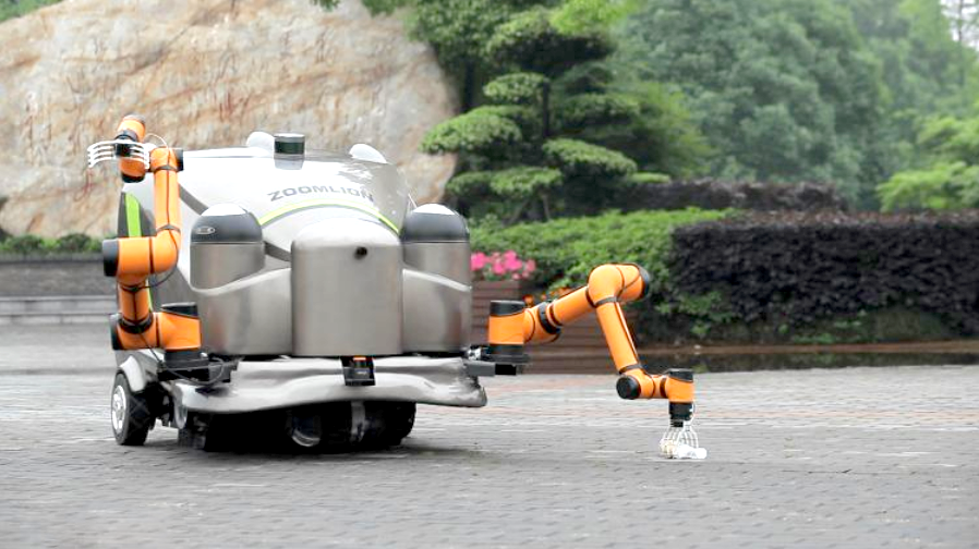 ▲撿瓶子的盈峰環(huán)境機(jī)器人