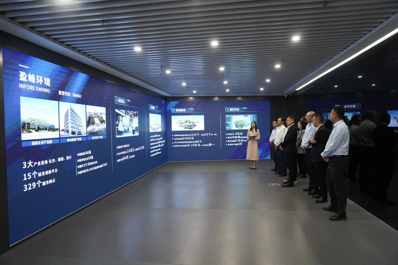 調研團隊首先蒞臨深圳盈峰中心展示廳,對盈峰集團在環(huán)境、文化、投資、科技、消費五大領域的多產業(yè)布局及盈峰環(huán)境在智能裝備、智云平臺、智慧服務領域的發(fā)展趨勢進行了深入了解。